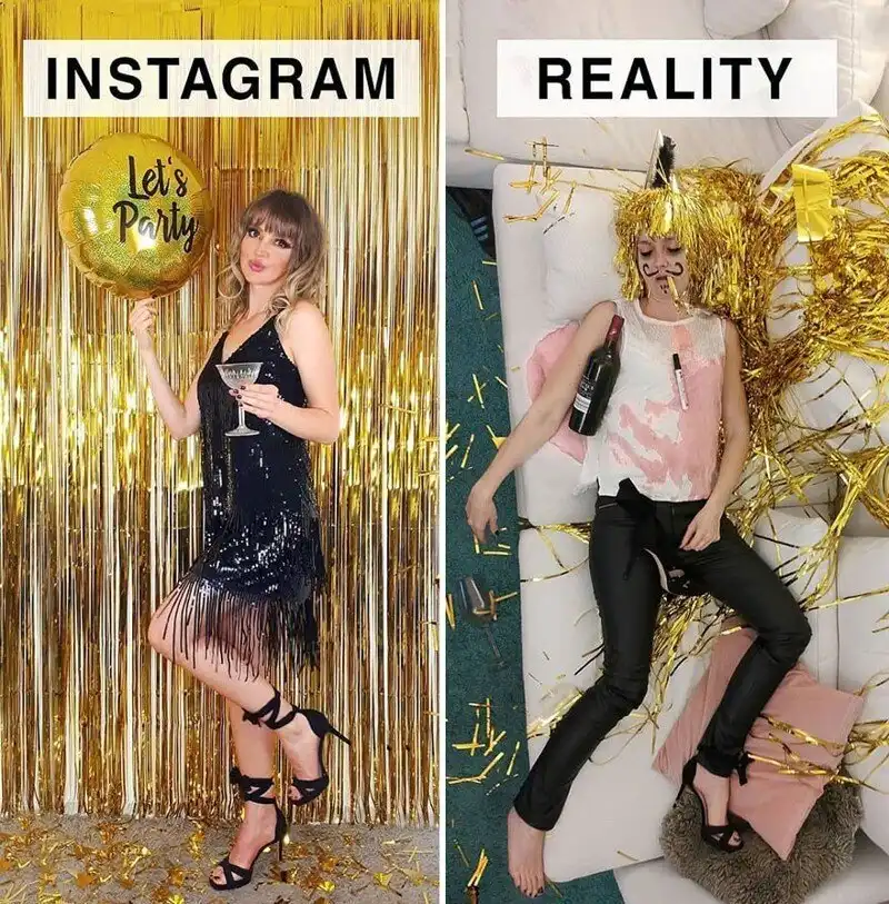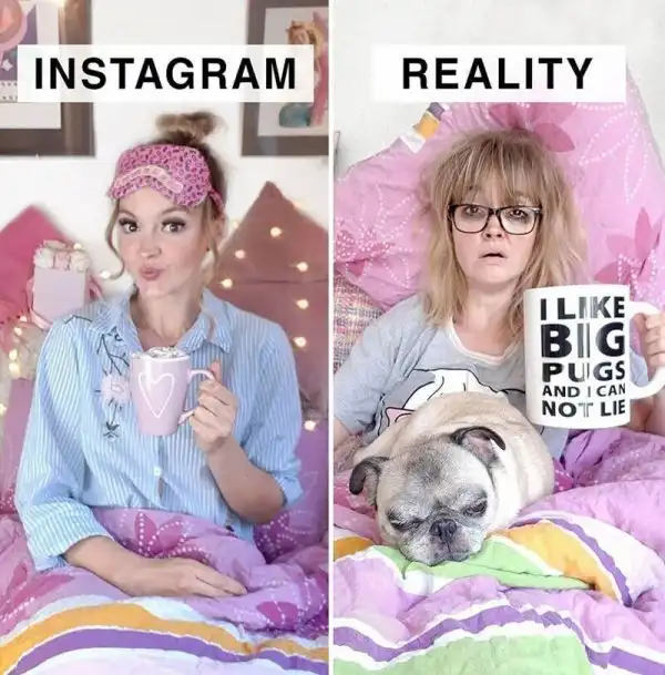 Популярный блогер Джеральдин Уэст развлекает своих подписчиков картинками из серии "Инстаграм и реальность". Она беззлобно подшучивает на стремлением людей публиковать только "причесанные", безупречные снимки, и показывает, как бы выглядели социальные сети, будь их пользователи честнее сами с собой.