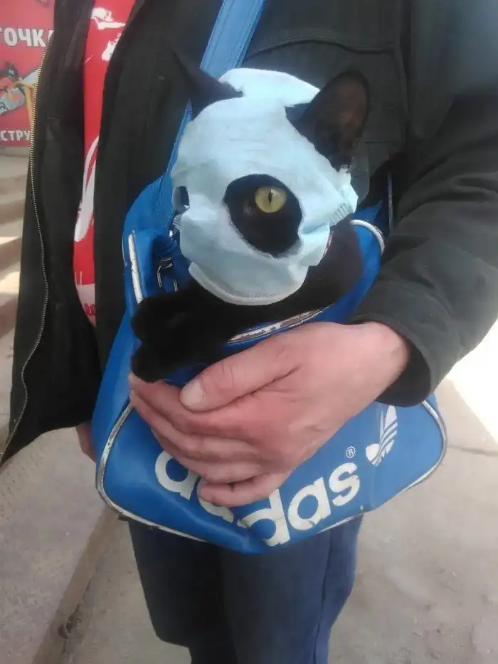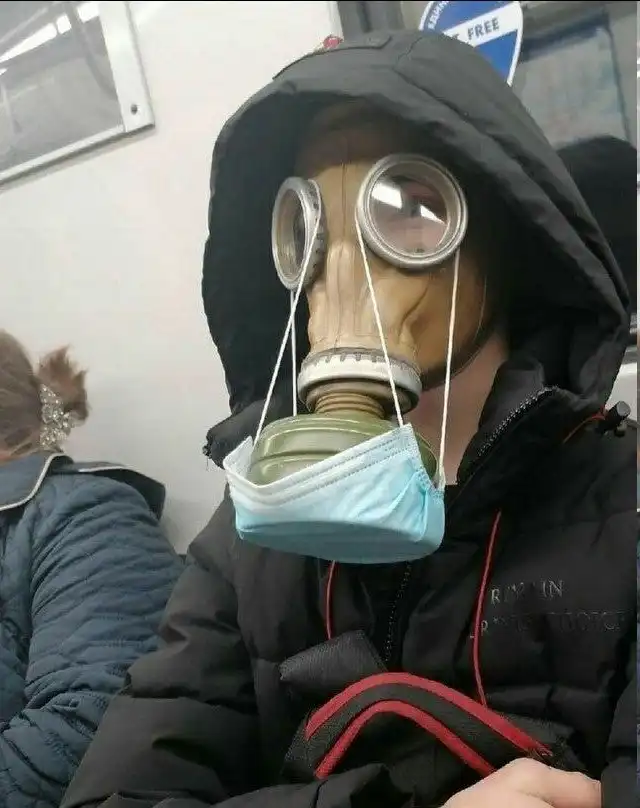 7. Кто-то настолько боится коронавируса, что защищает даже противогаз