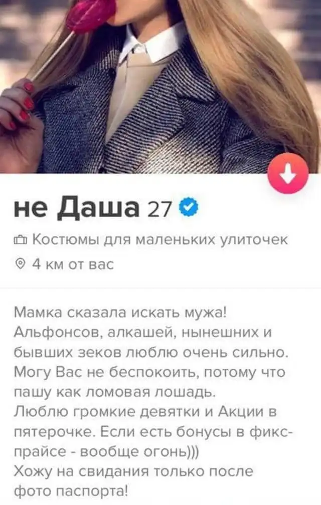 Знакомиться в интернете последние пару лет стало чем-то обыденным. Я даже знаю несколько пар, которые после знакомств сыграли свадьбы и живут долго и счастливо. Интересно, смогут ли эти люди найти свою второй половину, если публикуют такие анкеты?