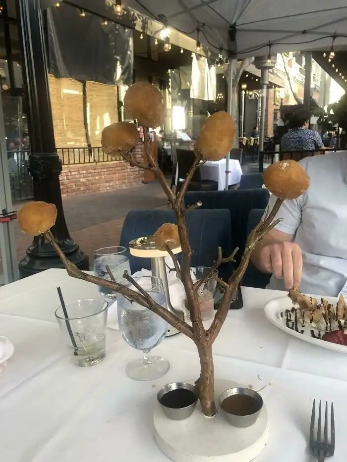 Десерт в виде навоза на вилах. Говорят, это шоколадный трюфель. Не знаем, пробовать не рискнули