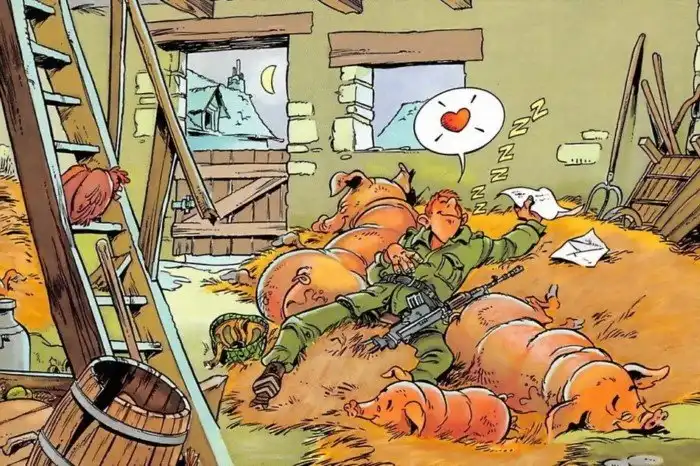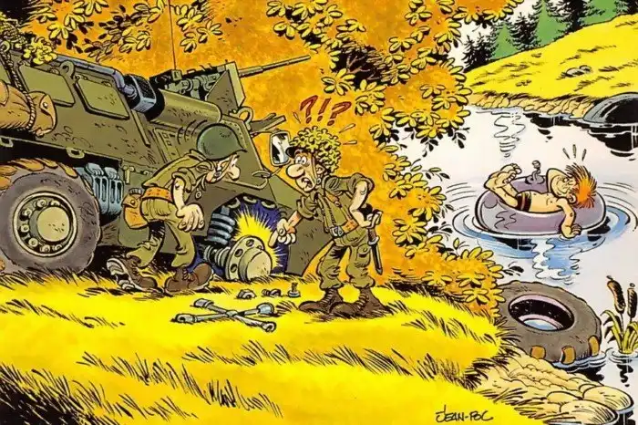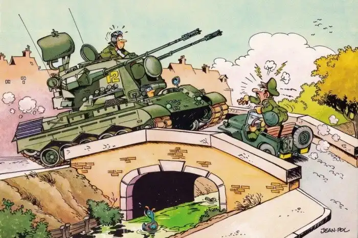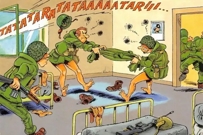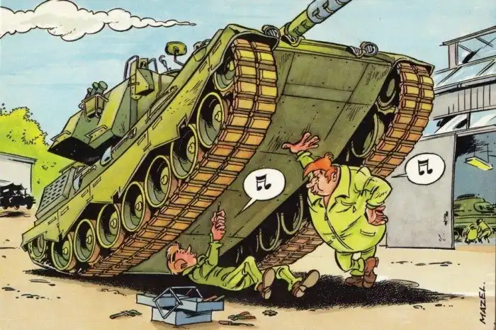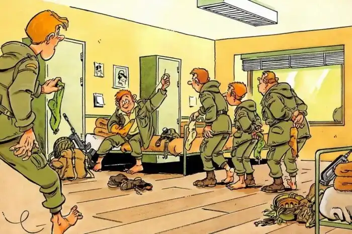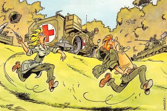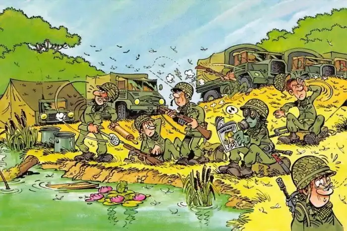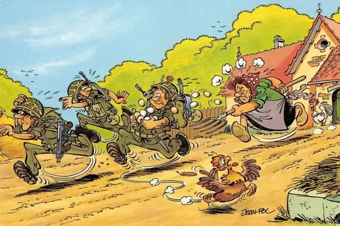Яркие почтовые открытки с незамысловатым армейским юмором. Эта серия сюжетов изданная в Бельгии в 80-90-х. годах.
