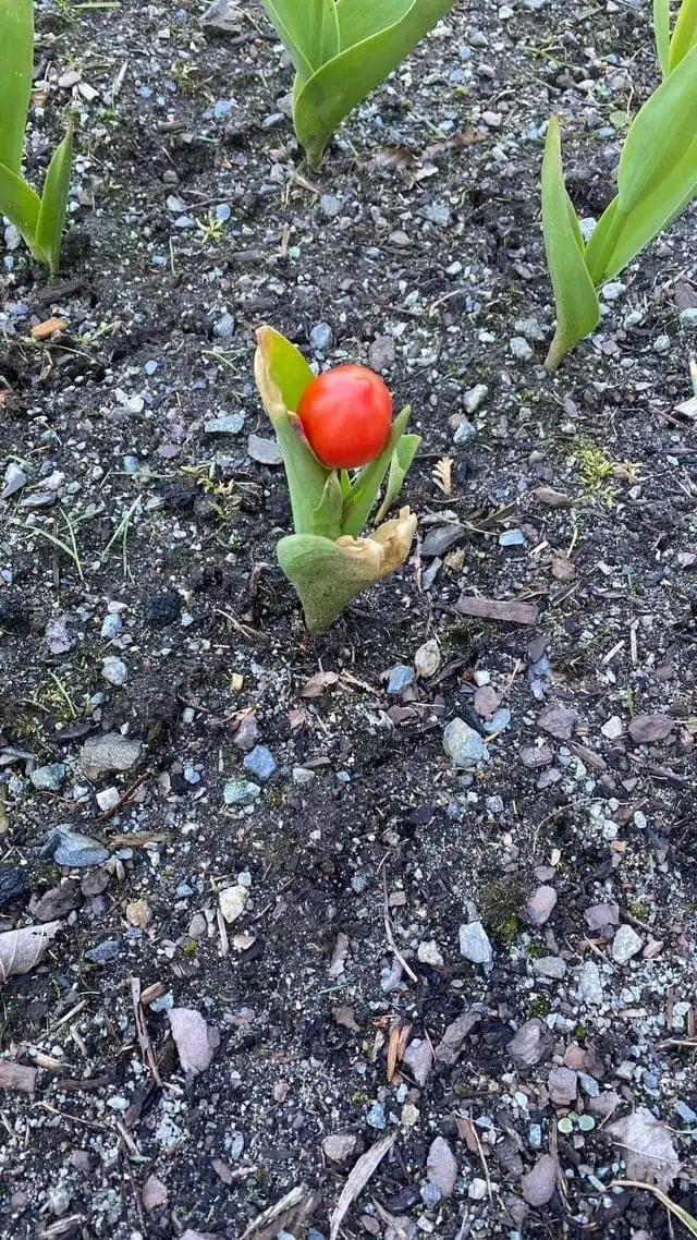 9. Мой брат сломал тюльпан и попытался это скрыть с помощью помидора