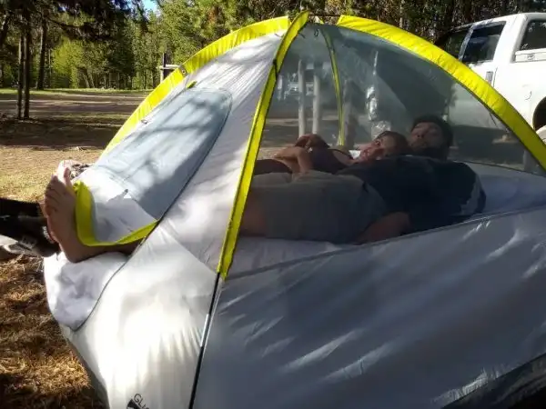 Когда вы положили в палатку матрас, но вы оба чертовски высокие