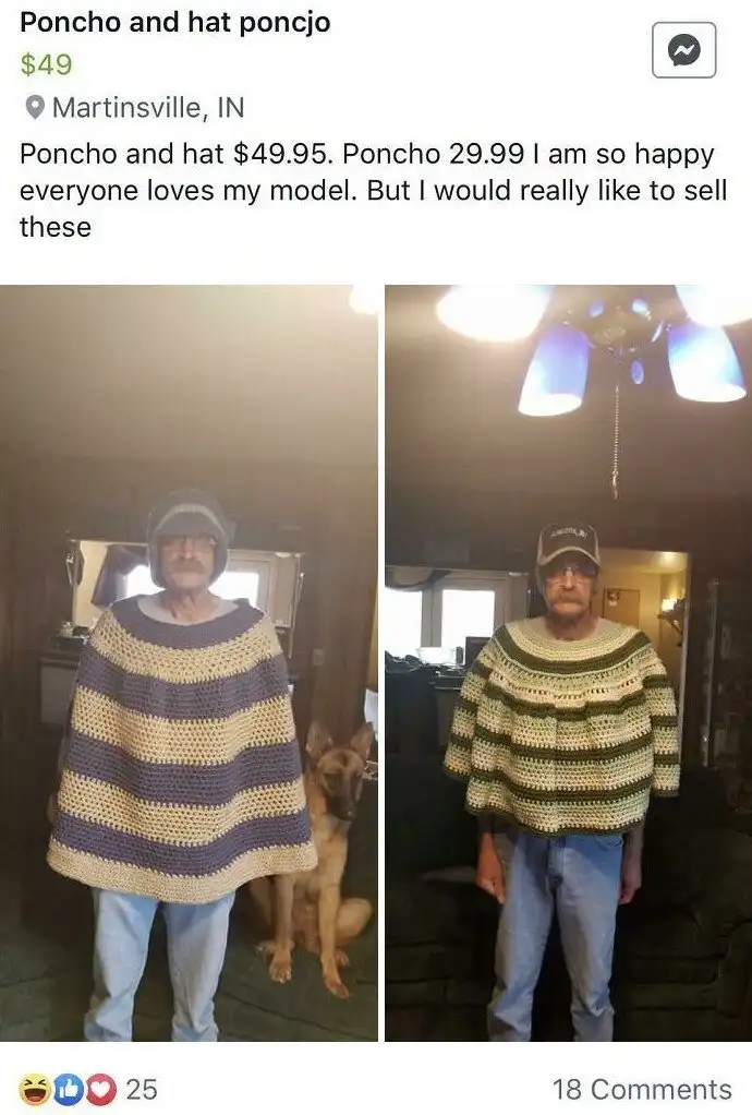 11. "Пончо и шапка 49,95 долларов, пончо 29,99. Очень рада, что всем так нравится модель, но мне бы все-таки хотелось их продать"