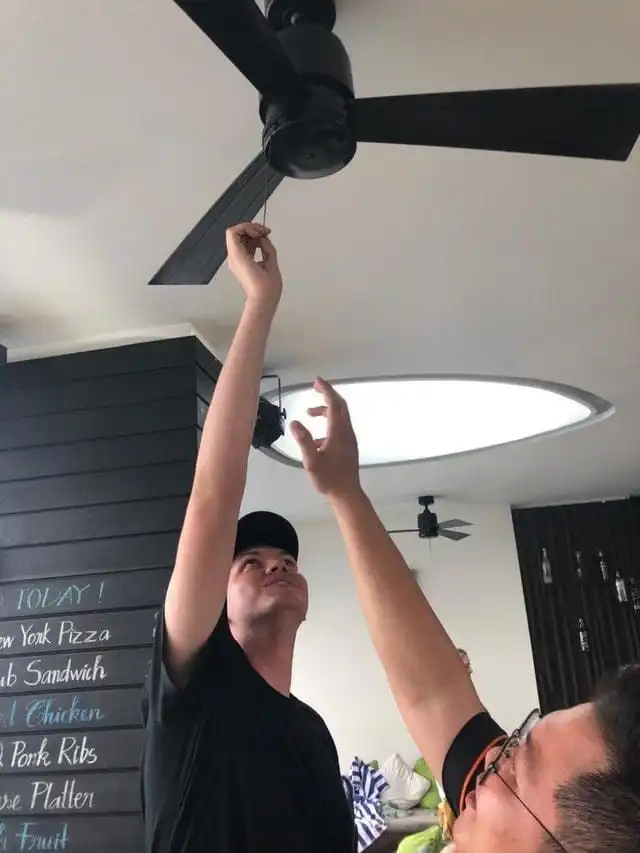 Привет, это я включаю вентилятор, потому что официант не мог дотянуться до выключателя.