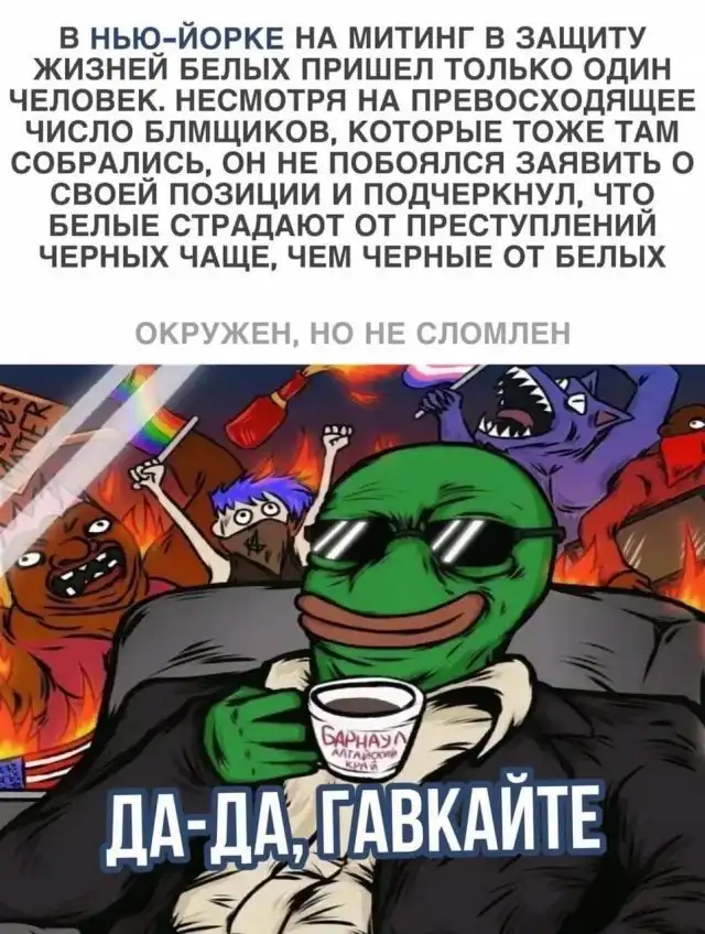 Если говорить совсем откровенно, порой создается впечатление, что мир действительно сходит с ума. Из всех щелей лезет пропаганда движения ЛГБТ, на западе активизировались мародеры и преступники из Black Lives Matter, а феминистки, между тем, требуют разрешить им красить подмышки. Все это вызывает и опасения, и смех. Поэтому предлагаю поднять себе настроение и посмотреть на подборку мемов и приколов о пропаганде ЛГБТ, феминизме и BLM.
