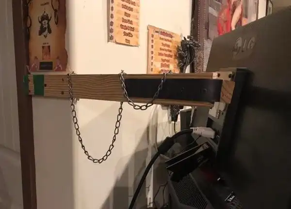 1. «Мы с женой сносили стену и увидели это… Коробка из-под Iphone 5s использовалась в качестве держателя для пульта от вентилятора. А под гипсокартоном и не скажешь!»