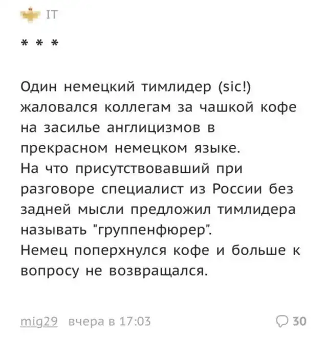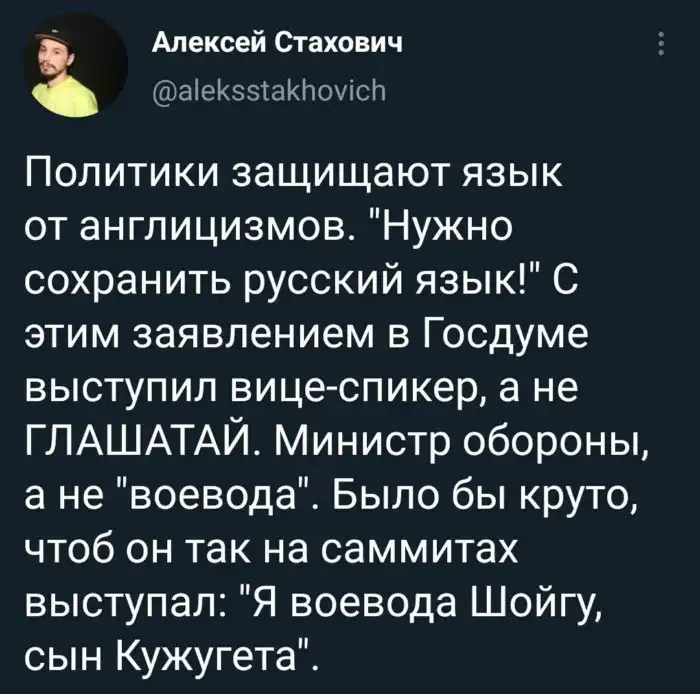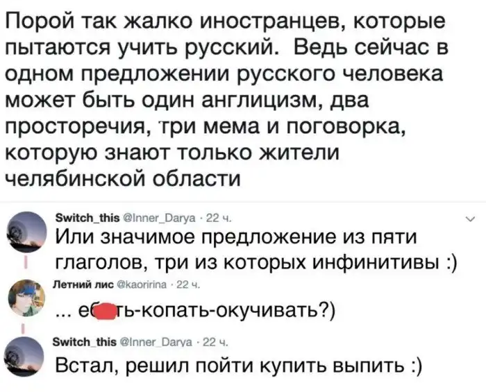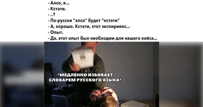 16. Что не так с этим человеком? Для чего он говорит на английском суржике?