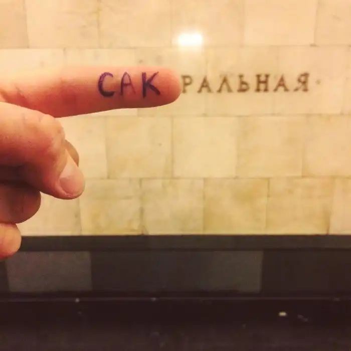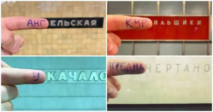 У Павла Буранова, например, это фото с названиями станций московского метро. Да вот только к каждому снимку он добавляет себя. Вернее только часть. А именно - пальцы.