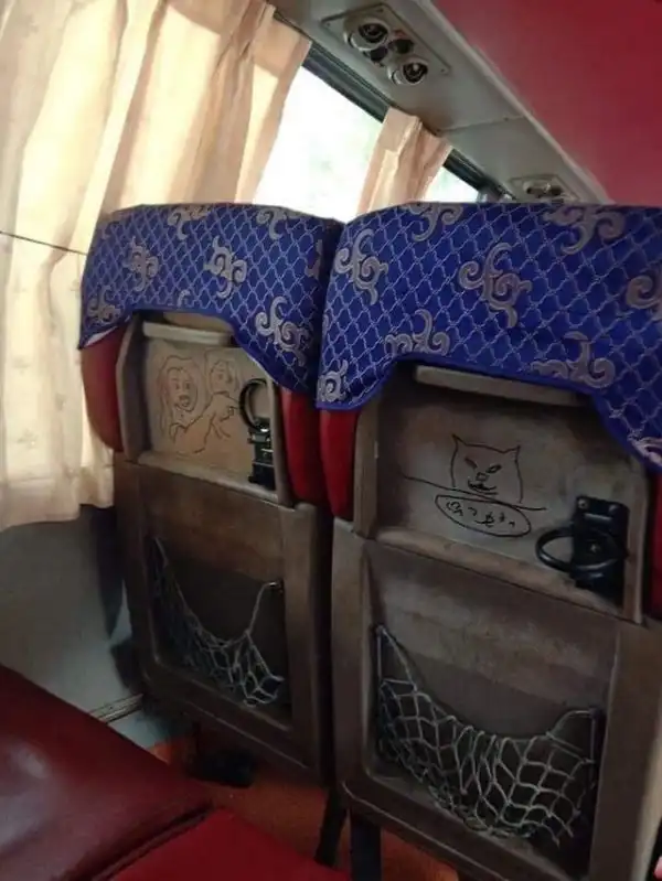 Под обшивкой сиденья старого советского автобуса были обнаружены наскальные рисунки времен позднего СССР