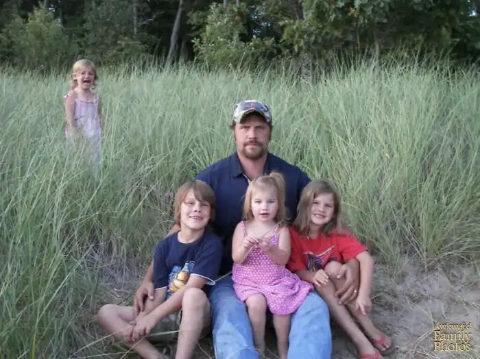 34. "Мой муж с детьми. Дочка не хотела фотографироваться, и мы сказали ей постоять в сторонке. Но когда я начала фотографировать, она еще сильнее расстроилась из-за того, что ее не позвали. Муж, как видите, тоже недоволен"