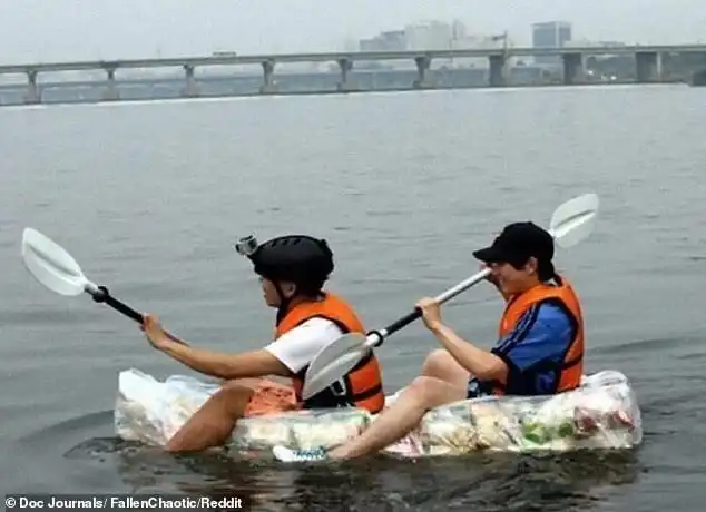 Лодка из пластиковых бутылок, может, и хуже настоящей, но на воде держится!