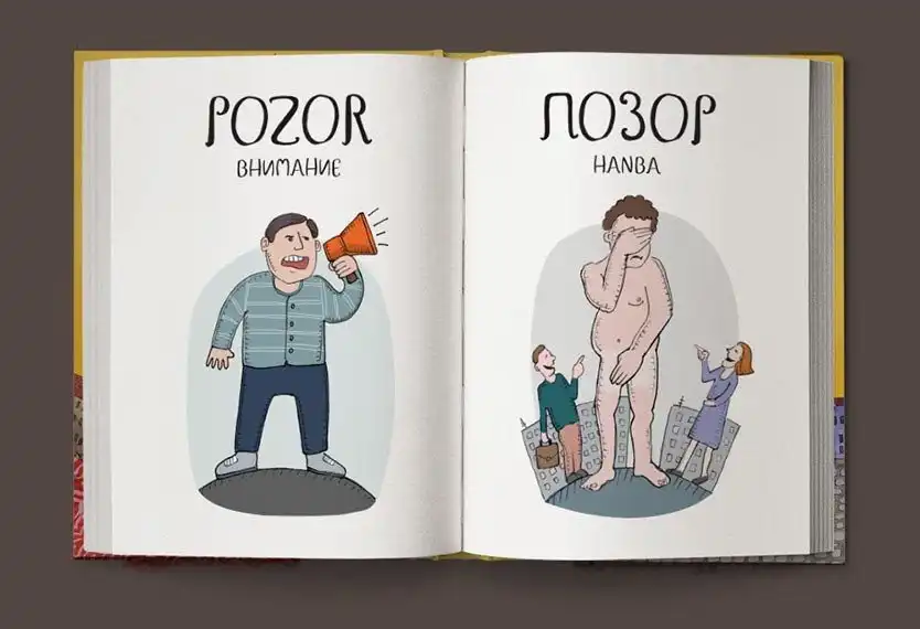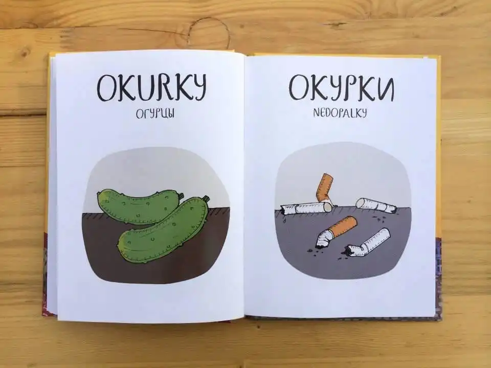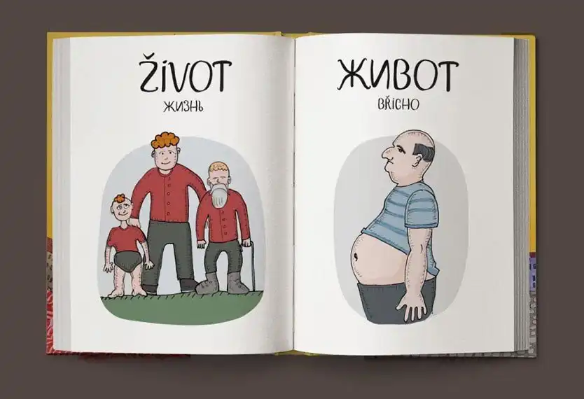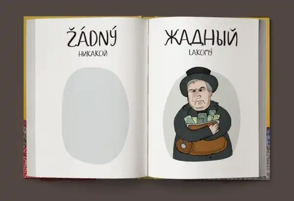 Чешский язык очень своеобразен, и, впервые услышав чешские слова, можно невольно рассмеяться. Если слова похожи по звучанию, то они абсолютно не совпадают по смыслу. Максим Янбеков решил создать и проиллюстрировать весёлый чешско-русский словарь.