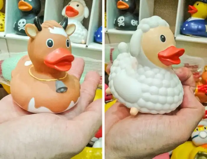 8. «Откопала на днях в магазине подарков и сувениров. Уткокоровка и овцеуточка?»