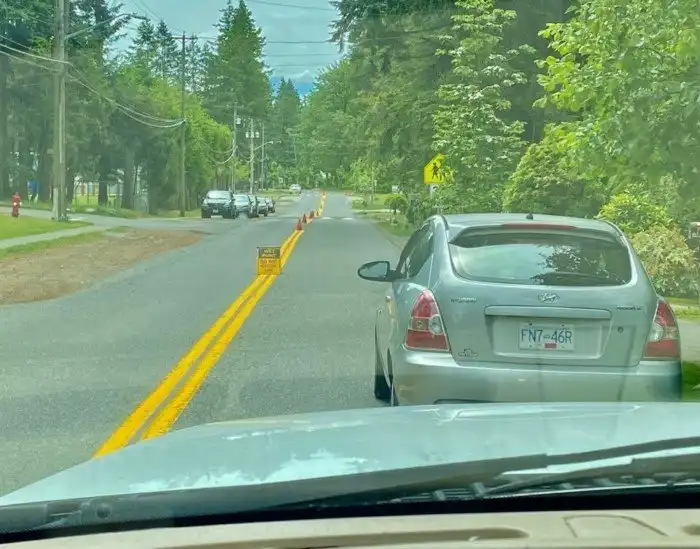 Кто-то решил припарковать машину на стороне, где ещё не высохла разметка