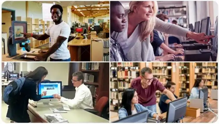 7. "Не все это знают, но очень важная часть работы библиотекаря - тыкать пальцем в экраны компьютеров".