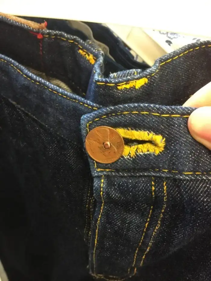 Нашёл на барахолке джинсы, на которых была монета в качестве пуговицы