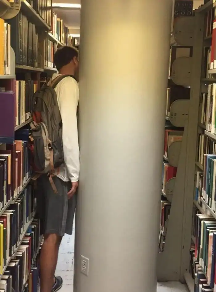 «В нашем колледже библиотечные полки установили рядом с опорной колонной так, что до книг в этом месте вообще не дотянуться»