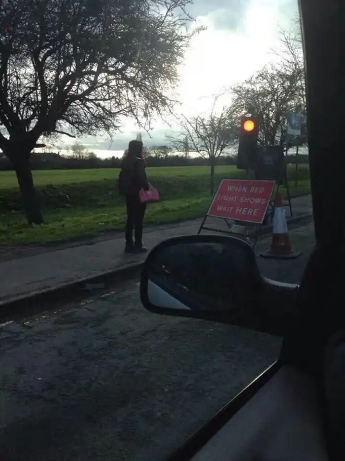 Девушка подумала, что надпись «если горит красный, подождите» относится к пешеходам