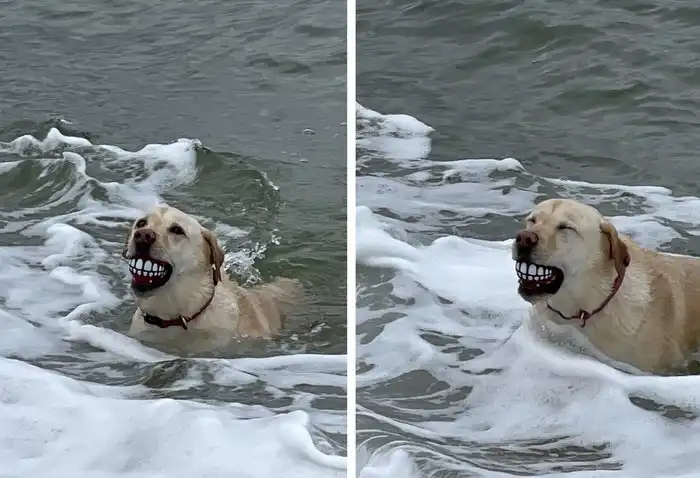 1. "Сестра подарила своему псу на Рождество новый мячик"
