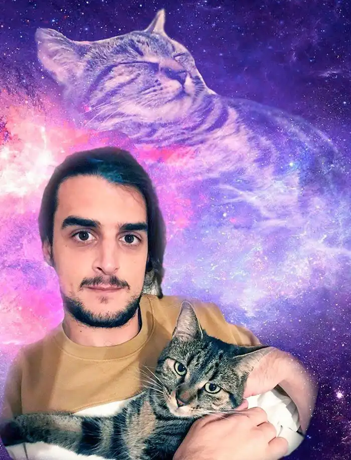 23. "Муж позирует с подаренной мной подушкой с нашей кошкой"