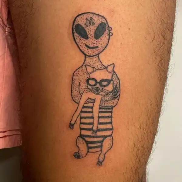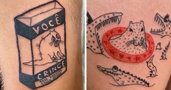 Хелен Фернандес - модный тату-мастер из Бразилии. Ее фишка в том, что она не профессиональный художник и не художник вообще: стиль ее рисунков в лучшем случае напоминает детские каракули. Это очень простые, наивные изображения. Возможно, поэтому они так нравятся людям.