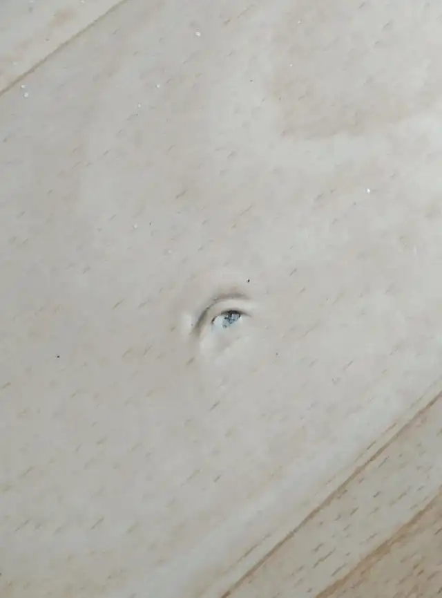 Маленькая зацепка на моём линолеуме выглядит так, будто кто-то смотрит на меня из-под пола