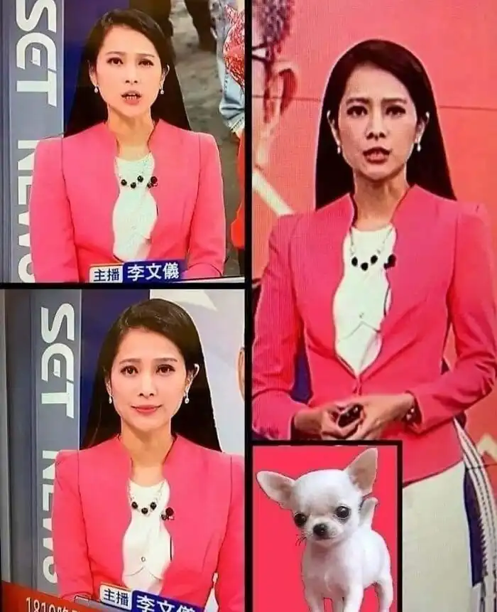 Одежда ведущей выглядит так, будто перед ней сидит собачка породы чихуахуа