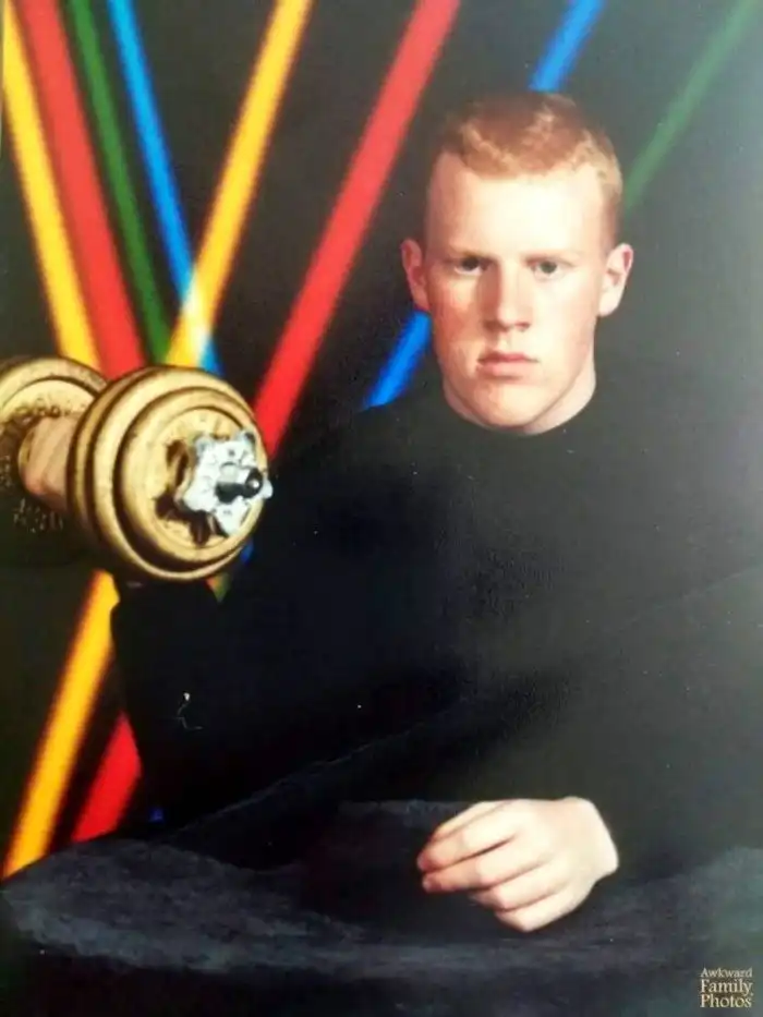 «Когда друзья спросили меня, что это за странное фото я сказал, что в старших классах любил поднимать тяжести, а мой папа был фотографом»