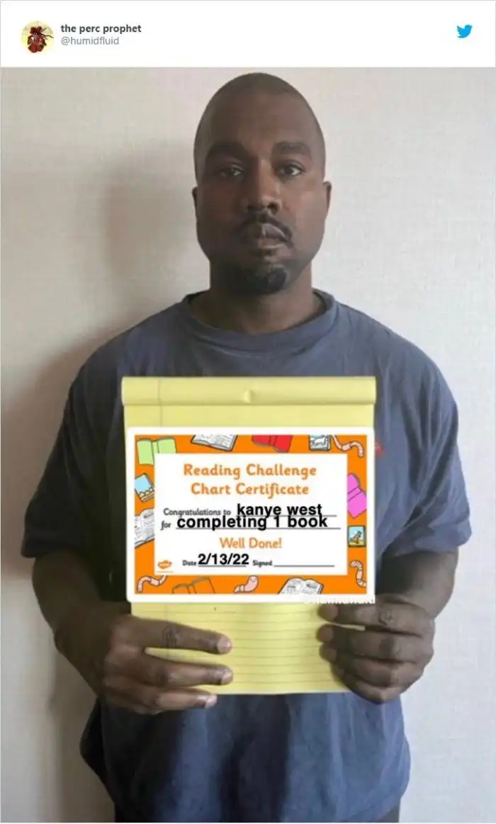 Сертификат участника читательского вызова. Поздравляем Канье Уэста с прочтением одной книги. Так держать!