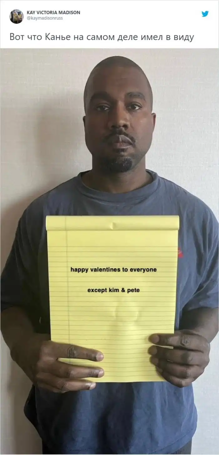 Посты были несколько странными, и поклонники Уэста заподозрили, что его страницу просто взломали, начав массово писать об этом. Тогда Канье решил выложить два своих фото с листочком в руках, где было написано «Мой аккаунт не взломан» и датой — 13 февраля 2022 года.