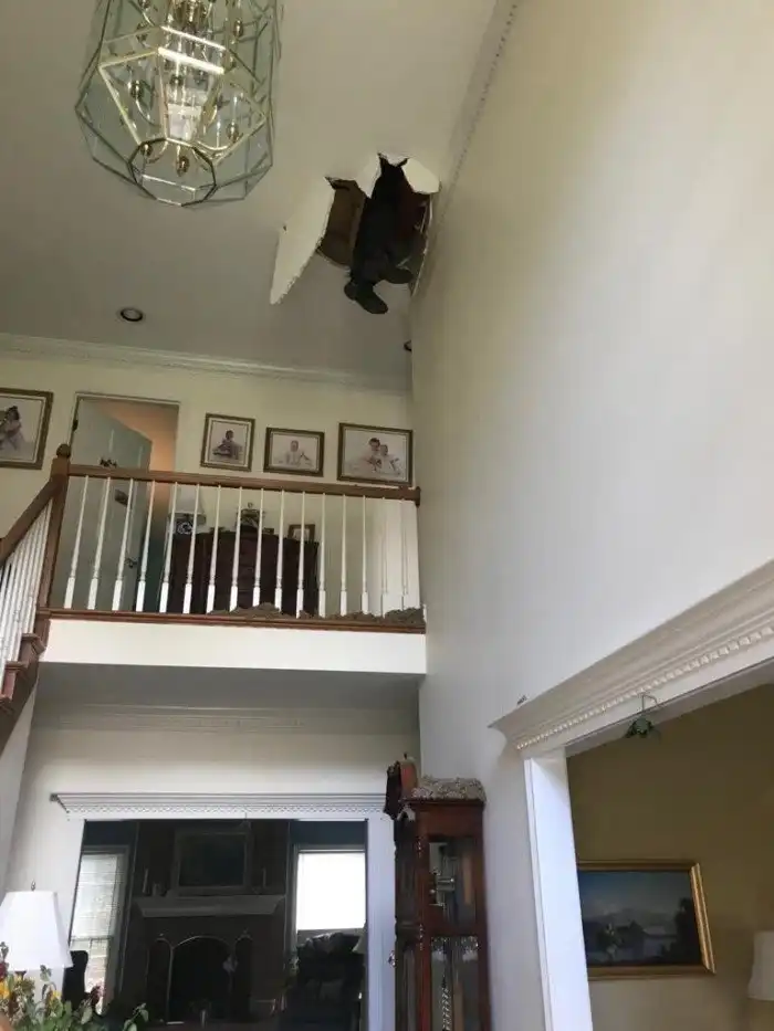 12. "Это мой вид с пола ванной на дыру в потолке, через которую я только что провалился"