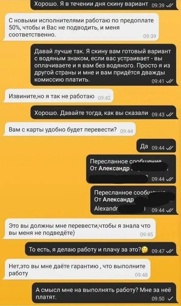 Переписки клиентов с заказчиками, которые вызывают недоумение