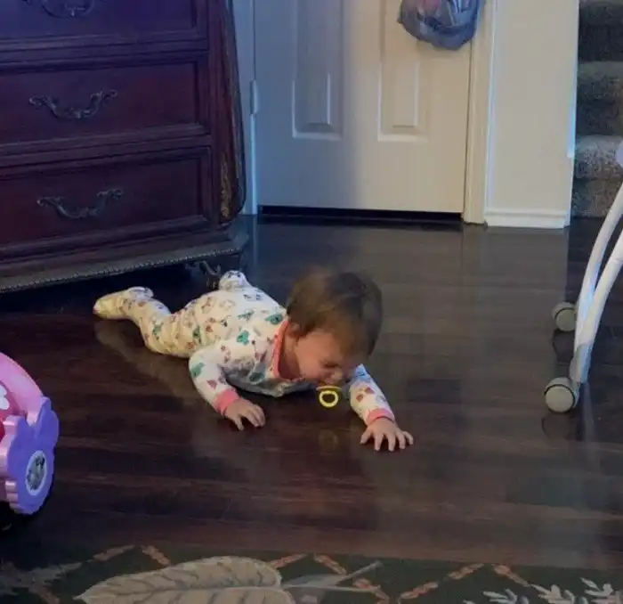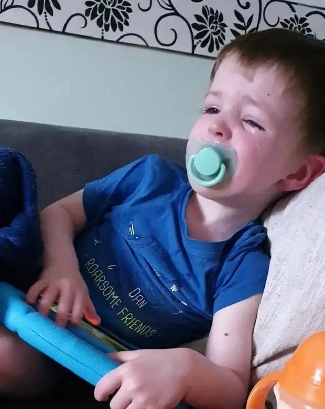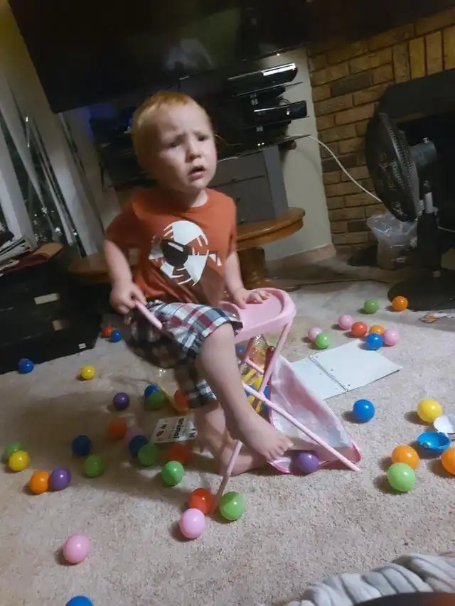 Хотел посидеть в этом стуле, заплакал из-за того, что застрял, а потом ещё раз, потому что мы его вытащили