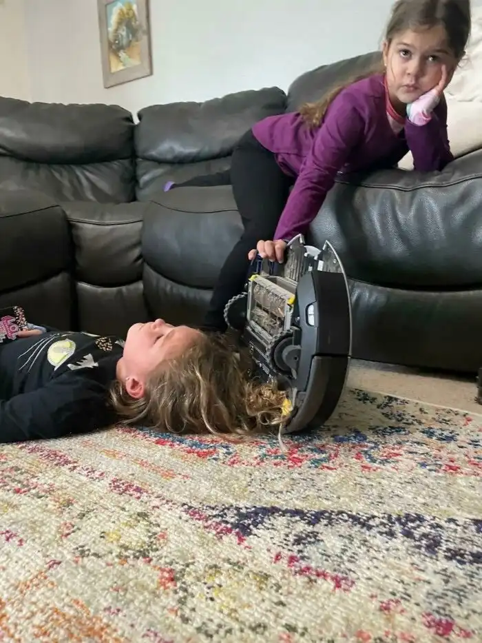 "Моя младшая сестра слишком внимательно следила за роботом-пылесосом"