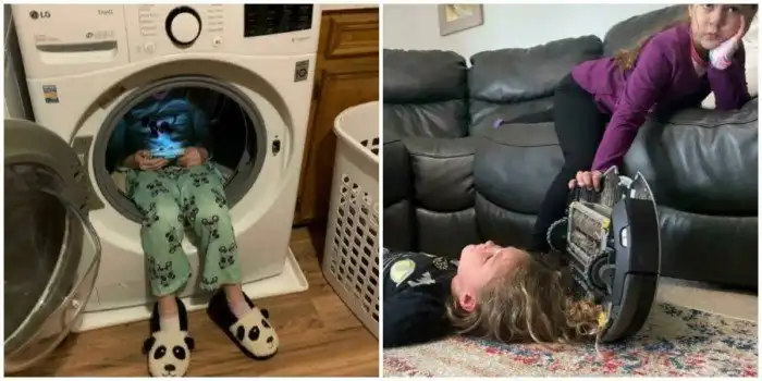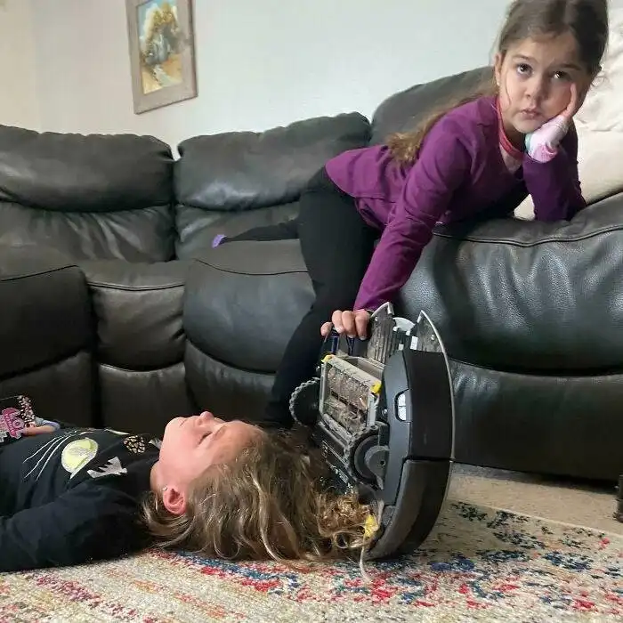 "Кто-то уронил телефон мамы в унитаз. Кто бы это мог быть?"