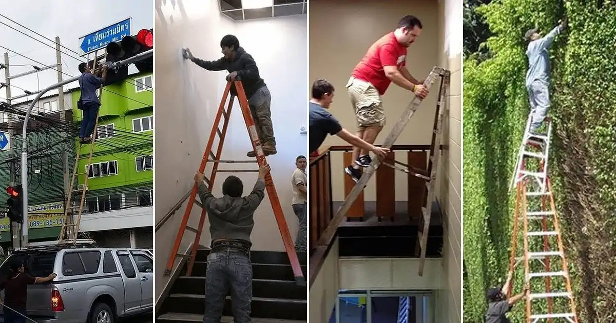 Для кого-то (хочется верить, что большинства) безопасность — превыше всего. Но есть и те, кто не остановится ни перед чем, лишь бы закончить ремонт. В забавном сообществе «Лучшие фото худших лестниц» пользователи Reddit собирают фотографии самых безумных и откровенно опасных случаев — от смельчака, который поставил одну лестницу на другую, и барышни, балансирующей на книгах, до совсем уж невероятных конструкций.
