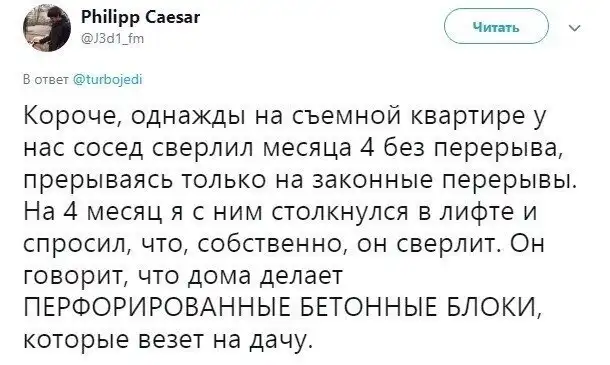 Видимо, на сайте нужно создавать отдельную рубрику или сообщество, посвящённое соседям. Так много материала и ржачных моментов появляется, что... Впрочем, смотрите сами ^_^
