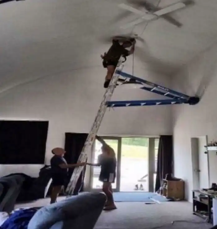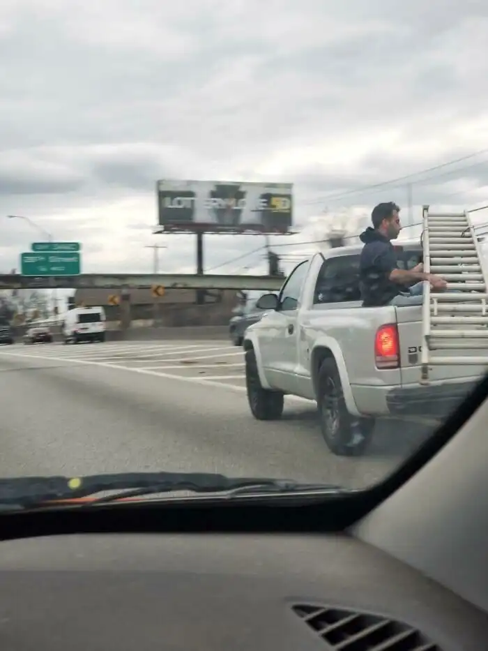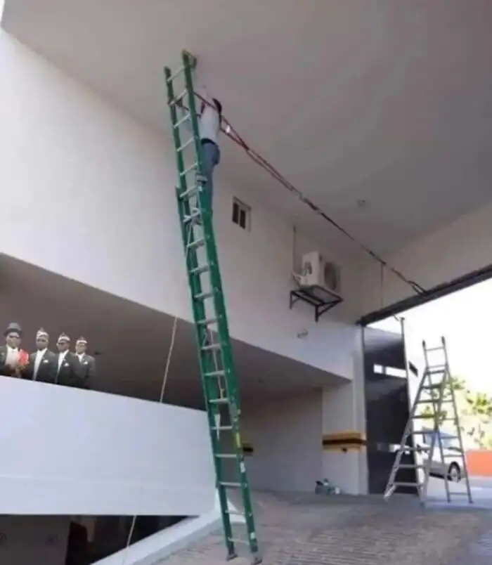 Парень просто перевозит лестницу