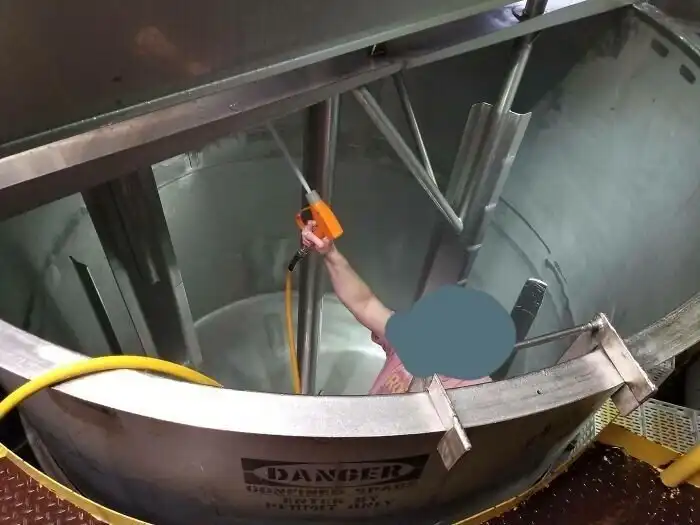 "Начал работать на новом месте. Коллега залез в гигантский миксер, чтобы показать мне, как его мыть"