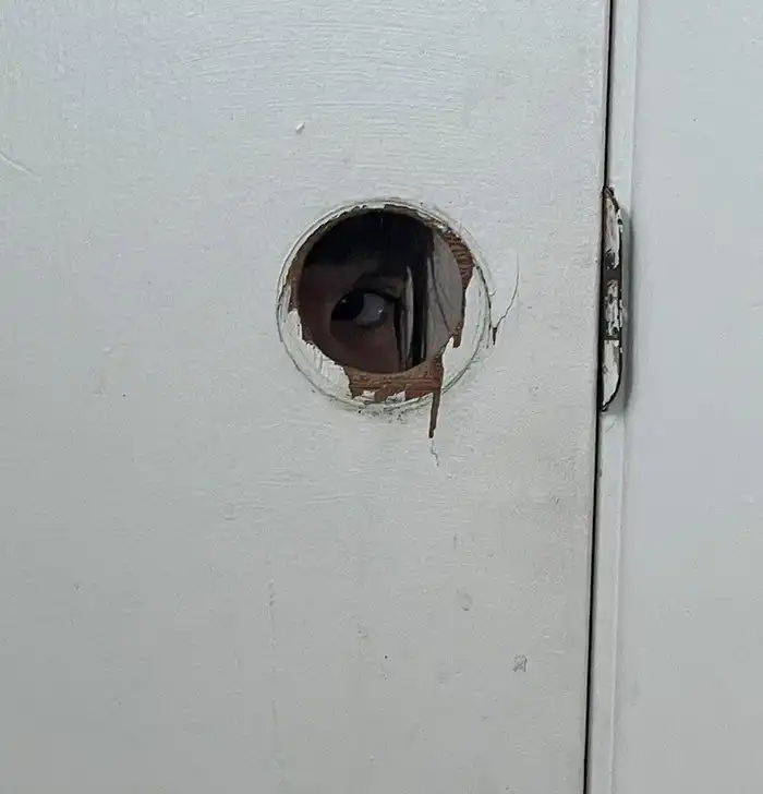 9. "В ванной нашего Airbnb была полупрозрачная дверь. Я привыкла к тому, что мой нетерпеливый карапуз следит за мной через дверь ванной, но это уже гораздо более жутко"