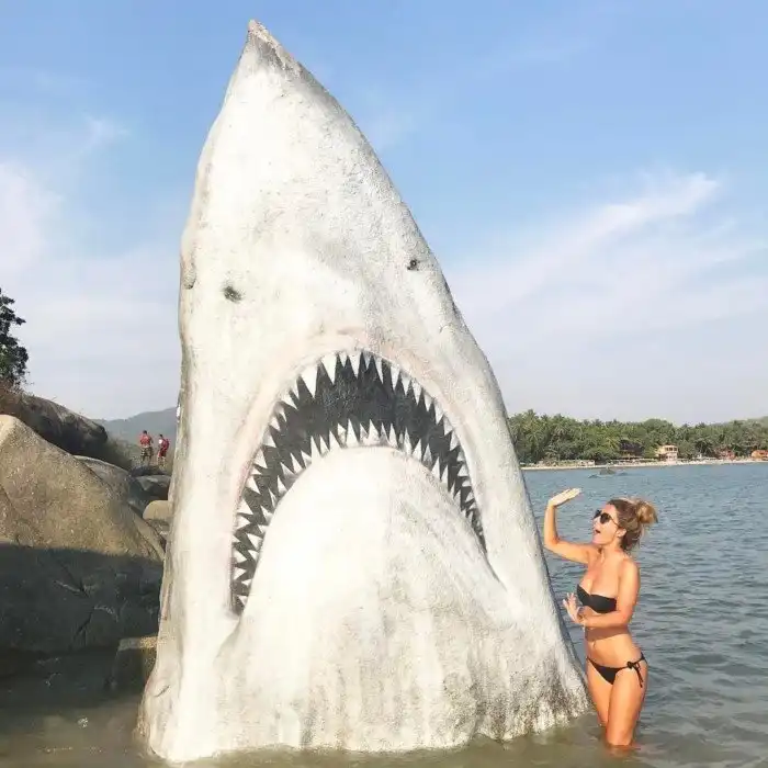 Выступающий огромный камень был мастерски разрисован американским художником Джимми Свифтом. Парень вдохновился фильмом ужасов «Челюсти», который рассказывает о безумной акуле, охотящейся на отдыхающих. К счастью, эта акула совершенна безобидна. Туристы обожают делать с ней забавные снимки.
