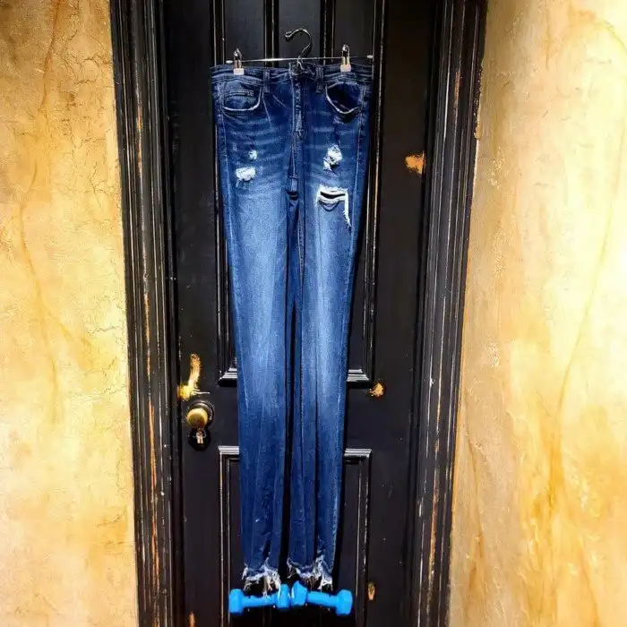 Выглядит, конечно, нелепо, но такой способ помогает растянуть джинсы и дать им дополнительную длину. А что делать, если нужную в магазинах днём с огнём не сыщешь?