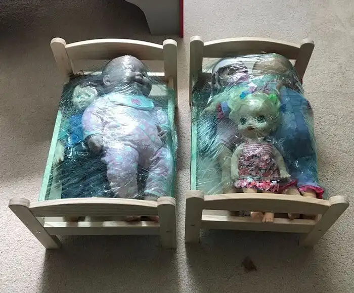 "Вот как моя жена упаковала куклы ребёнка перед переездом.."