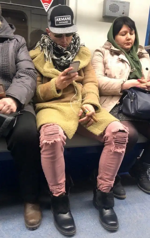 Свежая подборка фотокарточек со странными и категорически "модными" персонажами, которых можно встретить в российском метрополитене.