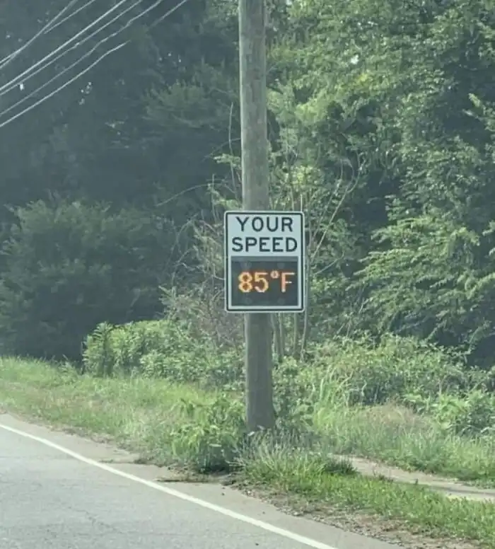 15. "Ваша скорость: 85 градусов Фаренгейта"