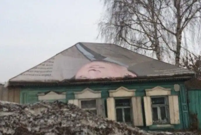 7. Иркутская область. Лет 5 назад. Заделали кровлю при помощи баннера
