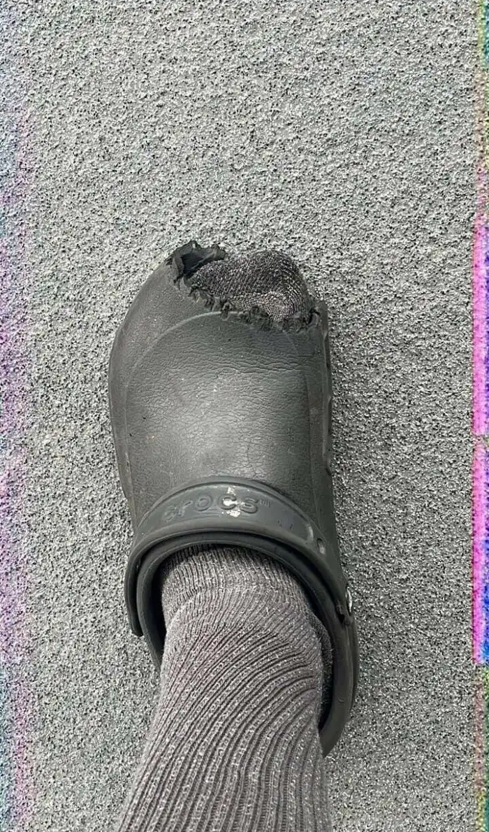 "Сегодня поднимался на эскалаторе, и он отщипнул кусок тапка"