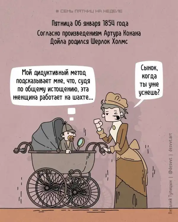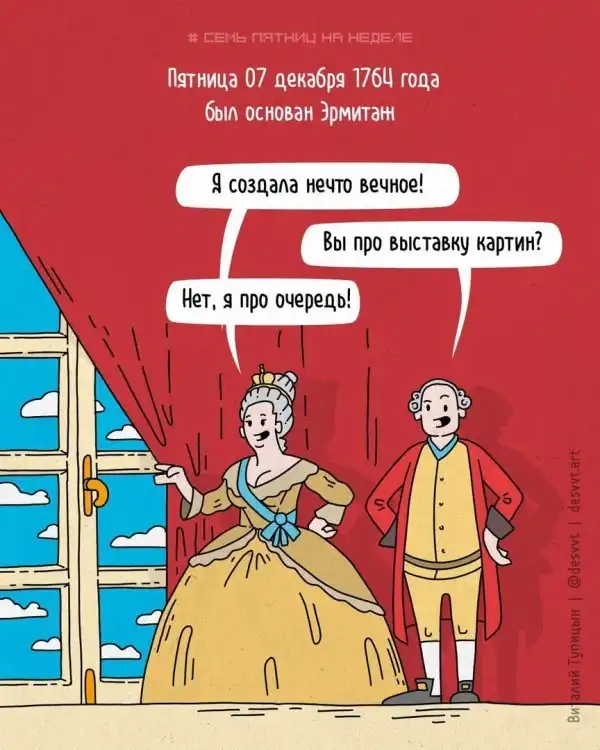 Иллюстратор и дизайнер из Москвы по имени Виталий запустил новый иллюстрированный комикс-проект длинною в целый год под названием "Семь пятниц на неделе". В них он иронично и забавно обыгрывает самые разные исторические события. Давайте проведем пару минут на позитиве и поглядим его работы.