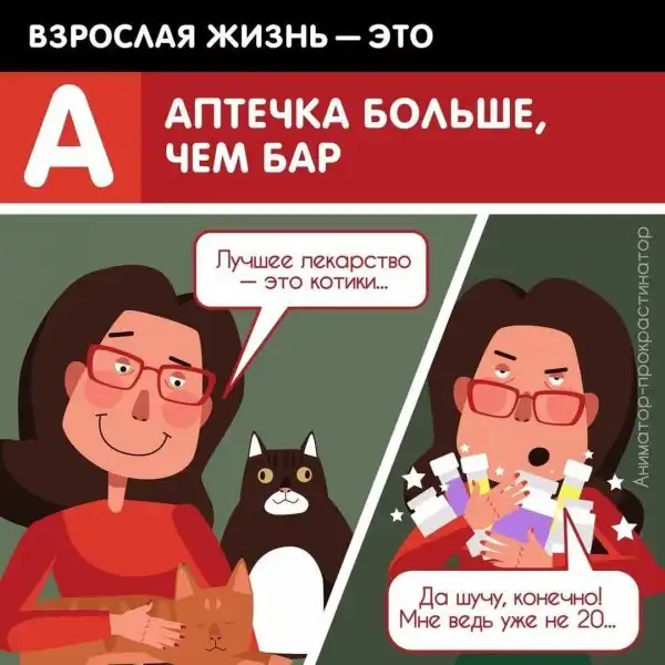 Художница с творческим псевдонимом "Аниматор-прокрастинатор" нарисовала забавную серию комиксов под названием "Азбука взрослой жизни" В них она точно и с иронично поведала о всех проблемах периода жизни, когда приходит осознание, что ты уже давно не ребенок.